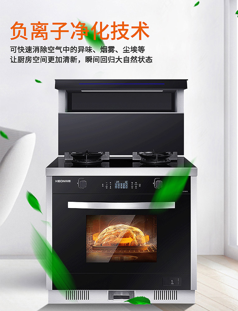 炎熱的夏天或許你需要集成灶十大品牌、廚電行業十大品牌科恩集成灶來幫忙,不管蒸煮煎炸烤,一次烹飪就能擺脫燥熱的廚房,科恩變頻大吸力蒸烤消一體集成灶擁有21m3/min爆吸技術,720Pa大風壓支持油煙還沒擴散就被吸走,并且搭載新風負離子凈化功能,有效降低廚房PM2.5,凈化空氣。另外,炎熱的夏天不想吃油膩的菜,就可選擇用科恩集成灶烹飪健康美味的蒸菜,清爽又健康,噴氣式4D立體蒸搭配“薩萊米”陶瓷加熱盤,360°新鮮蒸汽環繞,食物受熱均勻的同時保保證了不串味!
