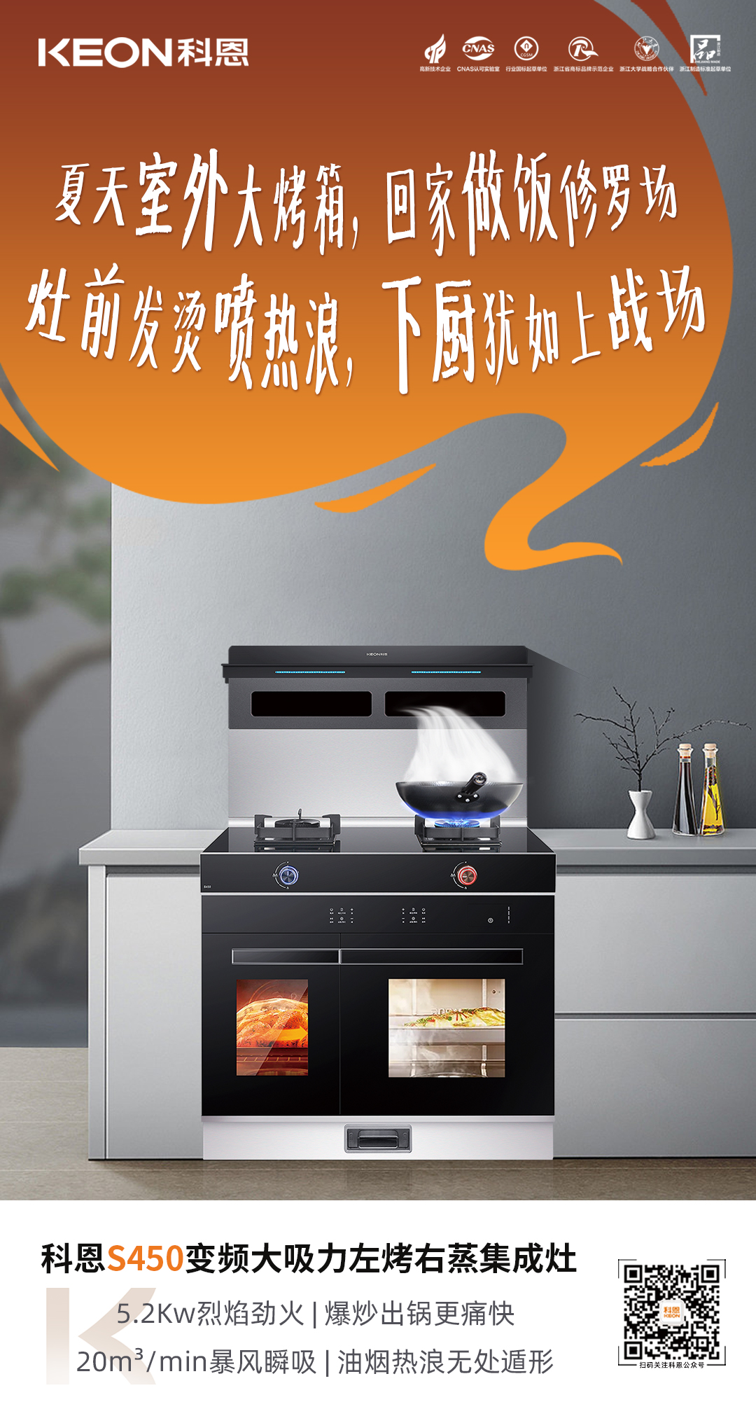 下廚這門手藝,功夫少不了,食材很重要,但最重要的還是擁有一臺S450變頻大吸力左烤右蒸集成灶,讓下廚不再揮汗如雨,讓廚房清涼一夏!