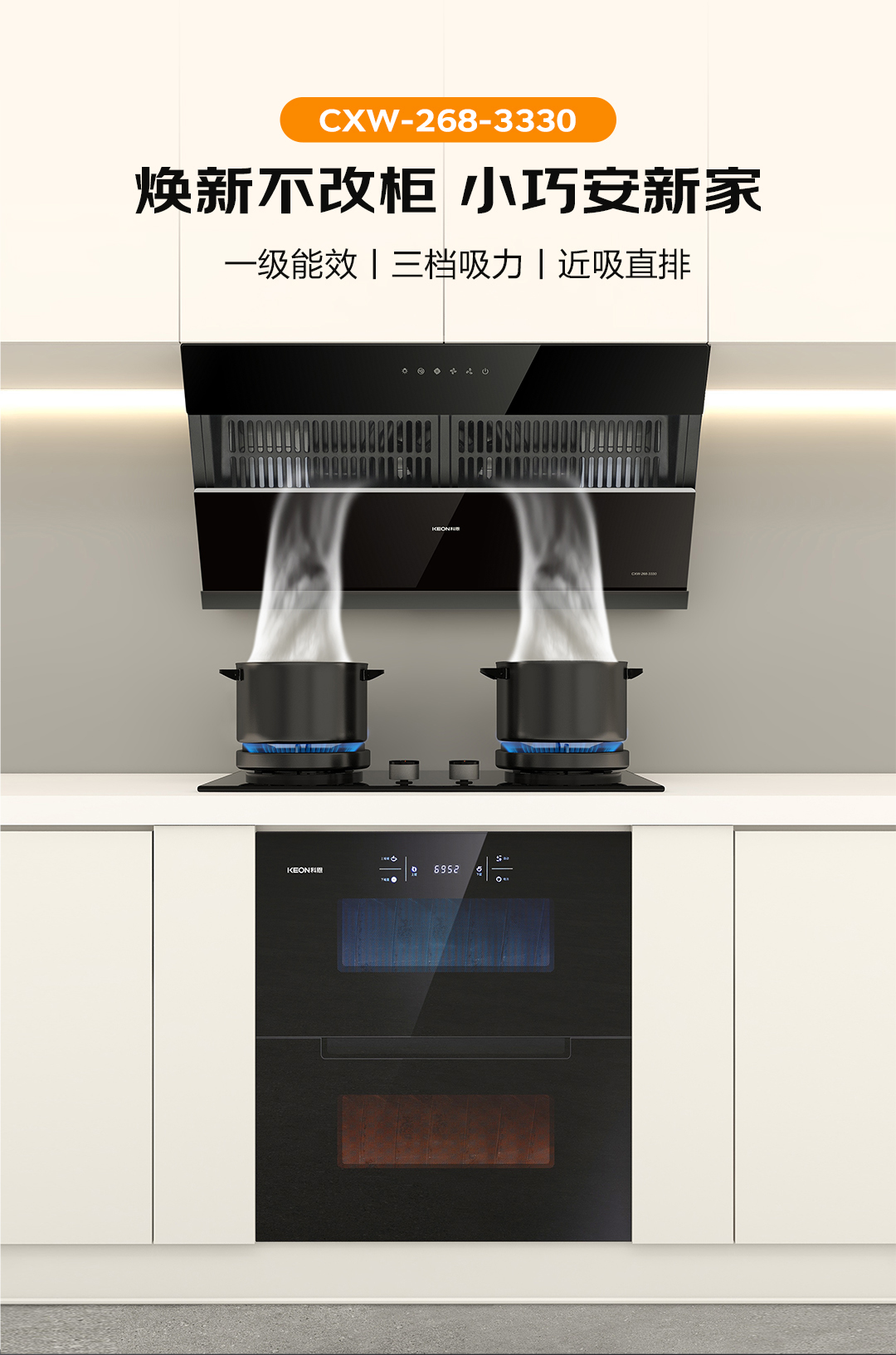 谷雨洗纖塵,人間向暖生。讓科恩油煙機5000和3330,治愈老廚房的呼吸困局。重塑開放式烹飪美學,實現谷雨過后的廚房煥然一新!