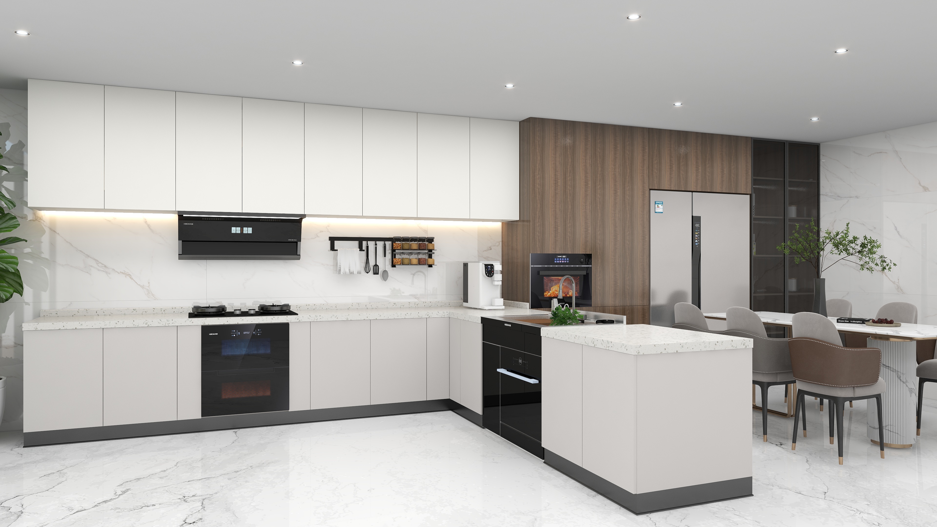 雙吸合力,不跑油煙。高位頂吸強效,低位側吸快攏,895mm 控煙區,全域無死角,上下齊發力,油污無處藏,變頻強壓,排煙無阻,1350Pa大風壓,高峰不回灌,科恩7810煙機,廚房更清爽。