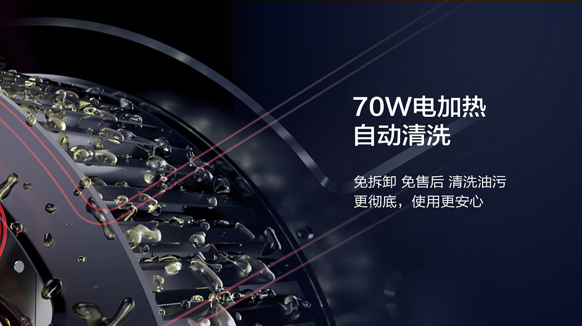 • 一鍵電熱自清洗,解放雙手,還原煙機澎湃動力,歷久彌新