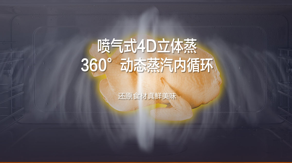 • 噴氣式4D立體蒸,360°動態蒸汽內循環,還原食材真鮮美味
