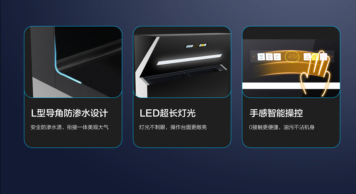 • 手感智能操控,0接觸更便捷,油污不沾機身
