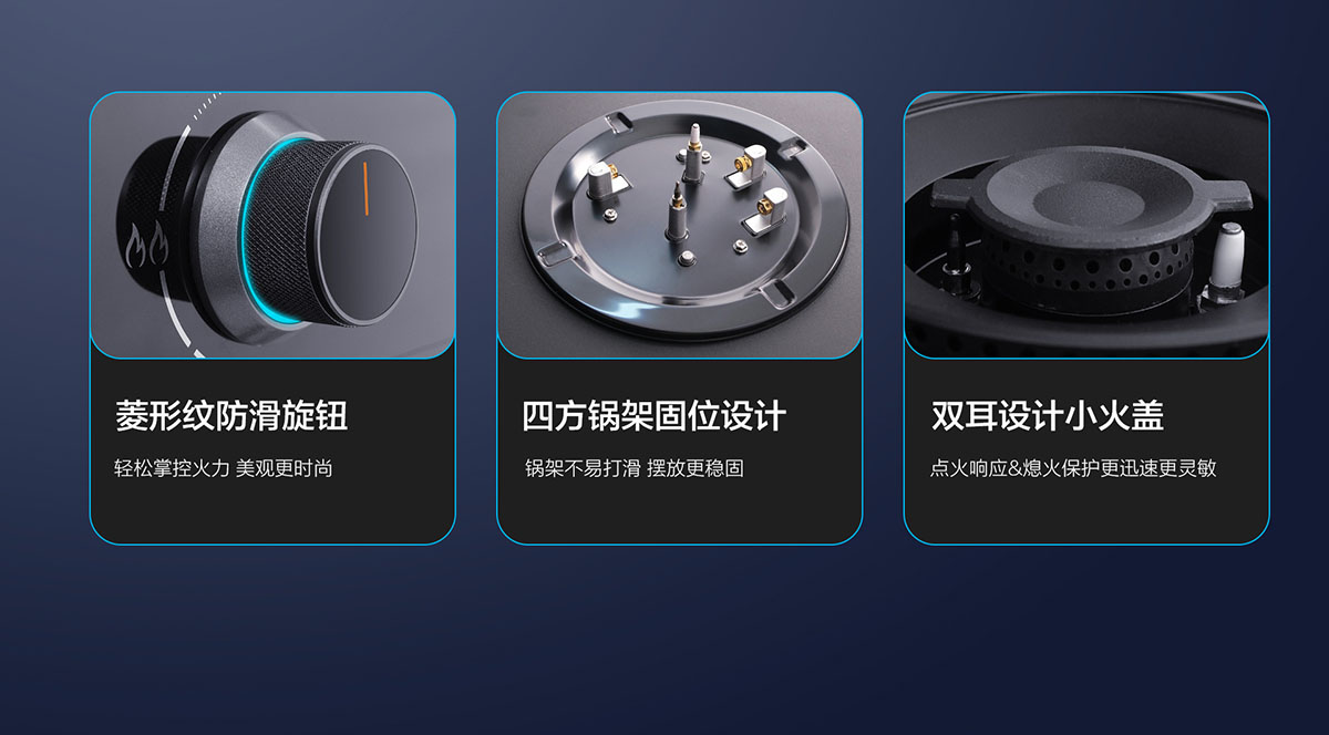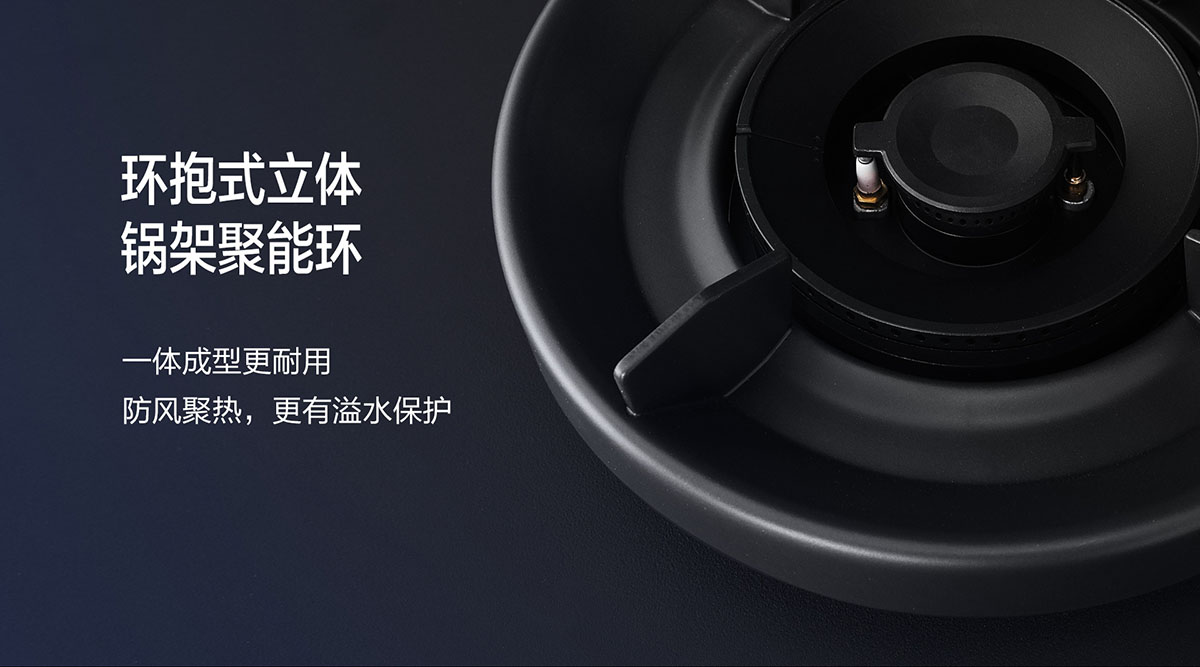• 環抱式立體聚能環,防風聚熱,更有溢水保護