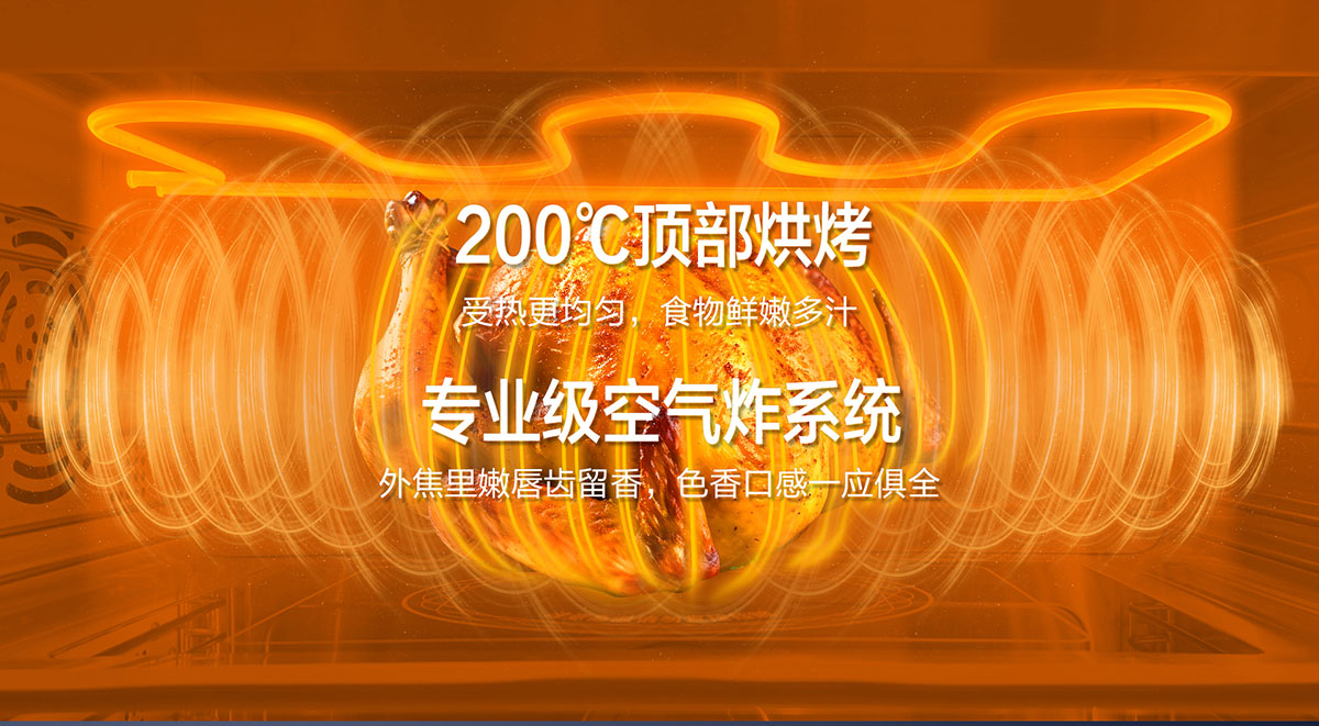 • 200℃頂部烘烤,受熱更均勻,食物鮮嫩多汁