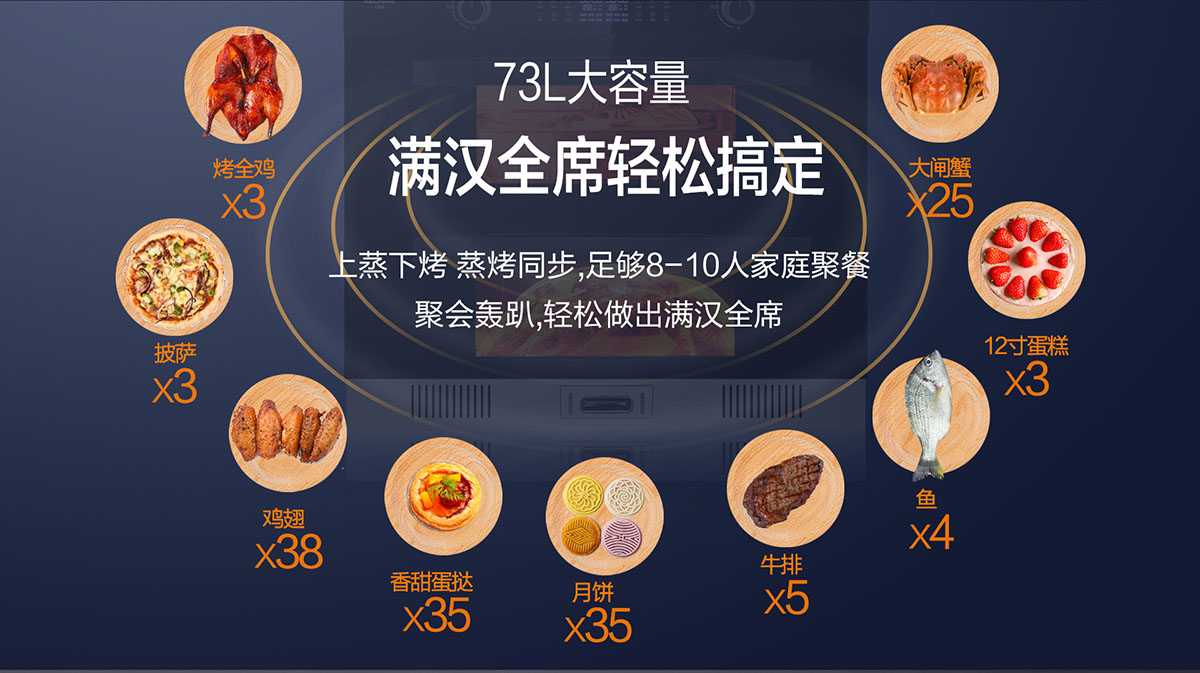 • 蒸烤消一體,智能廚房一步到位,滿足各種食材烹飪