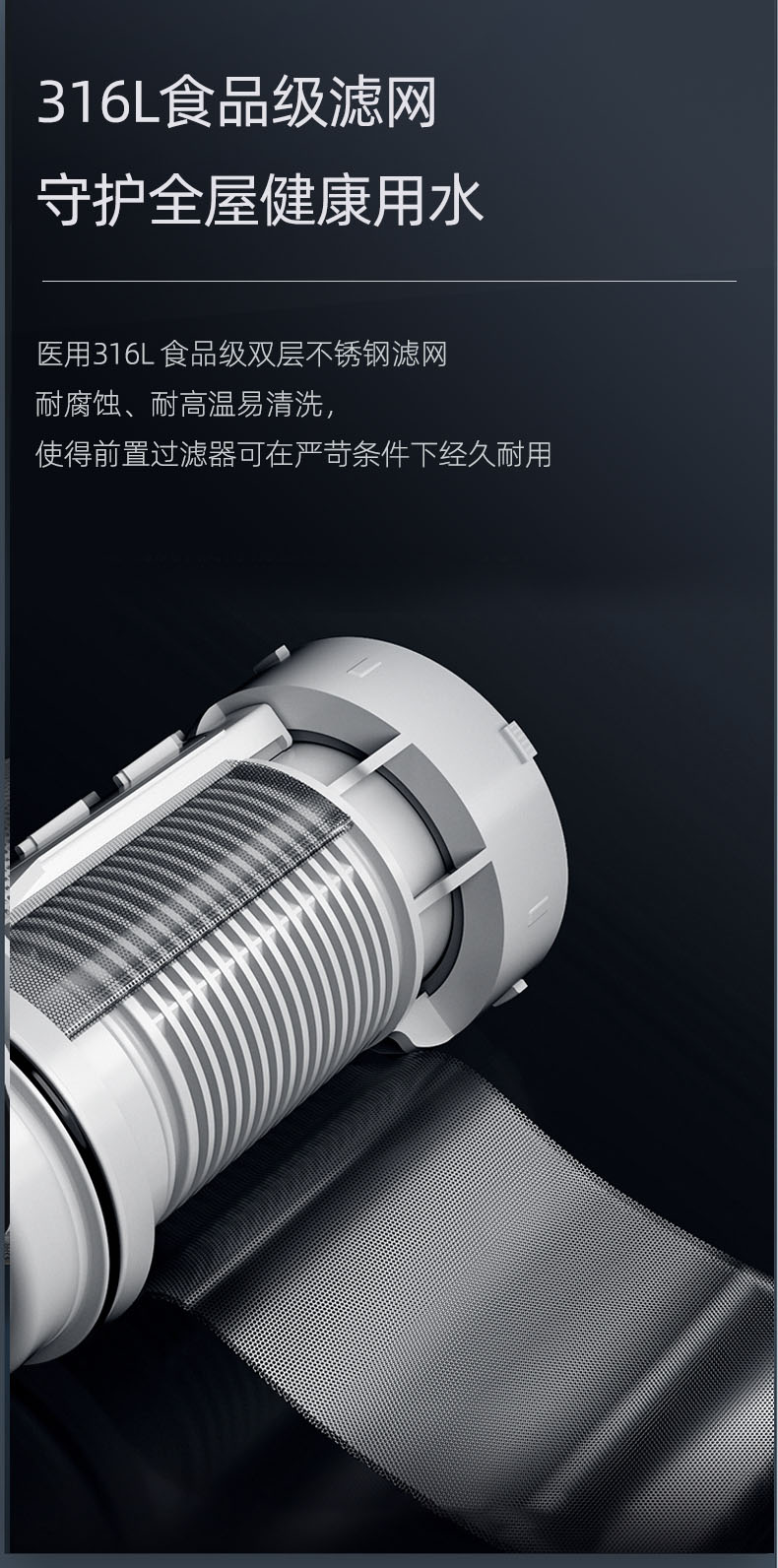 - 40μm過濾精度,精密不銹鋼濾網,提升水質
