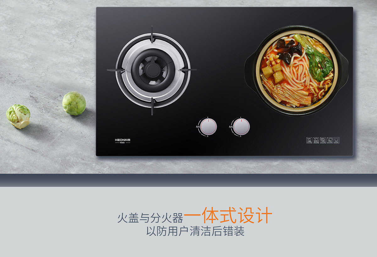 • 火蓋與分火器一體式設計,以防用戶清潔后錯裝