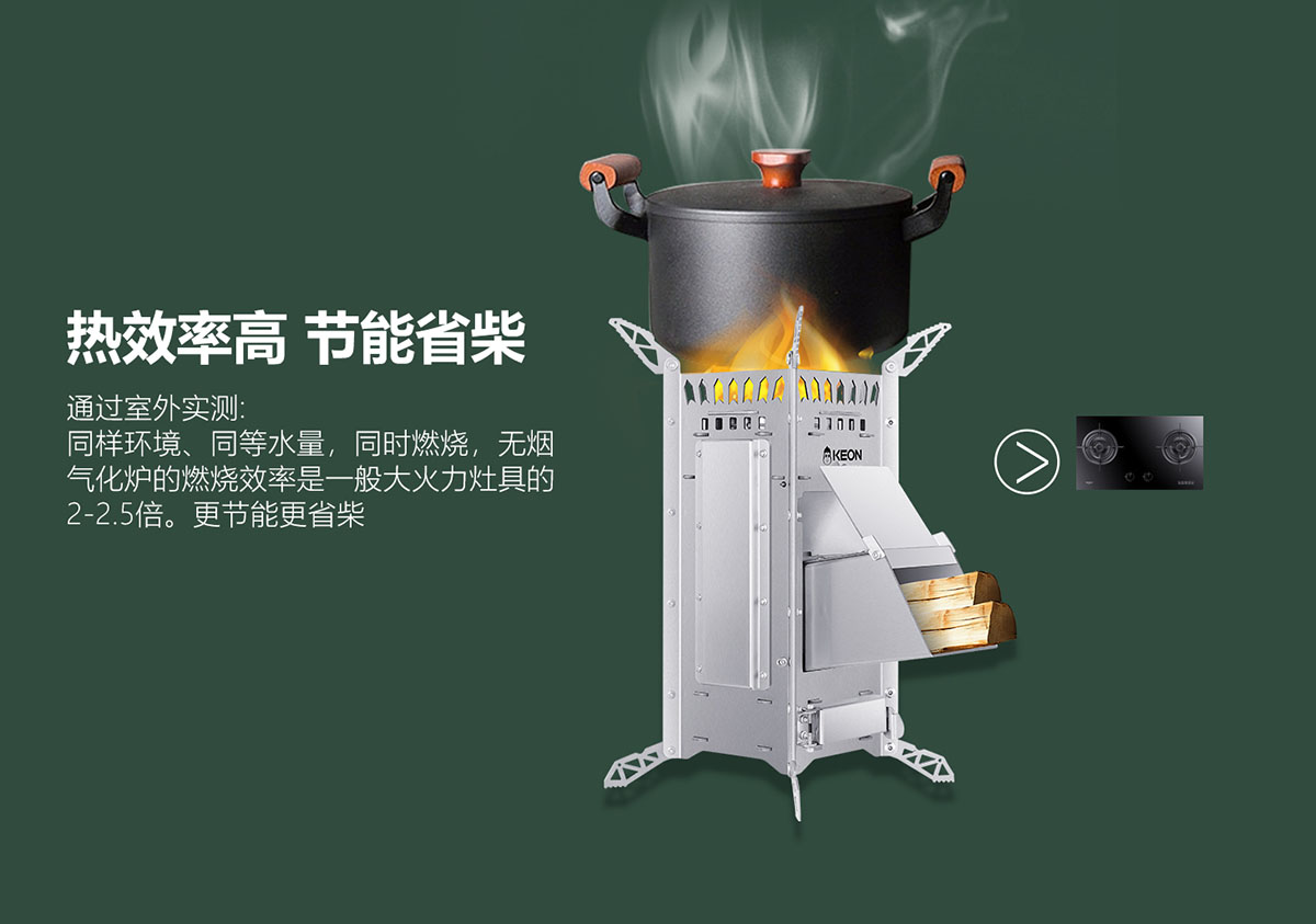 • 3D繞流爐膛,科學供氧,猛火無煙