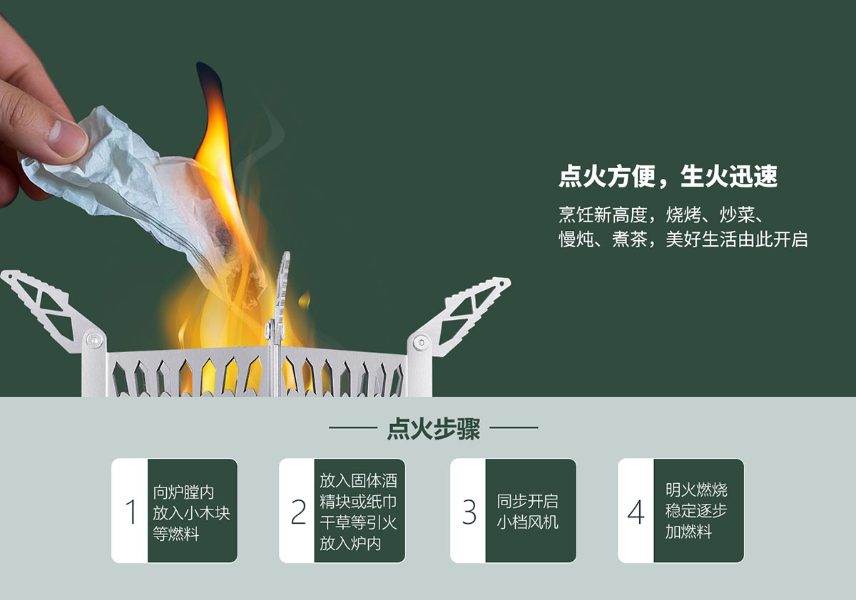 • 科學結構設計,點火方便,生火迅速