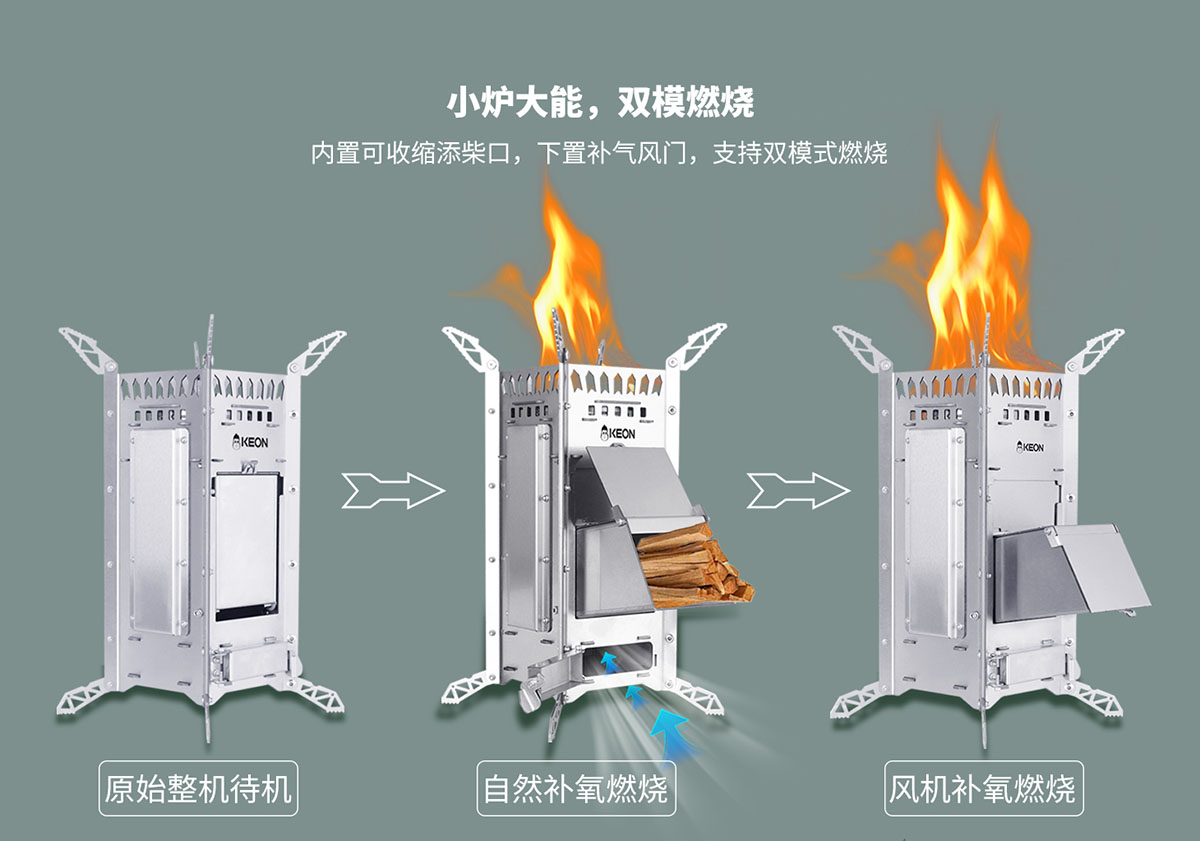 • 內置可收縮添柴口,下置補氣風門,支持雙模式燃燒