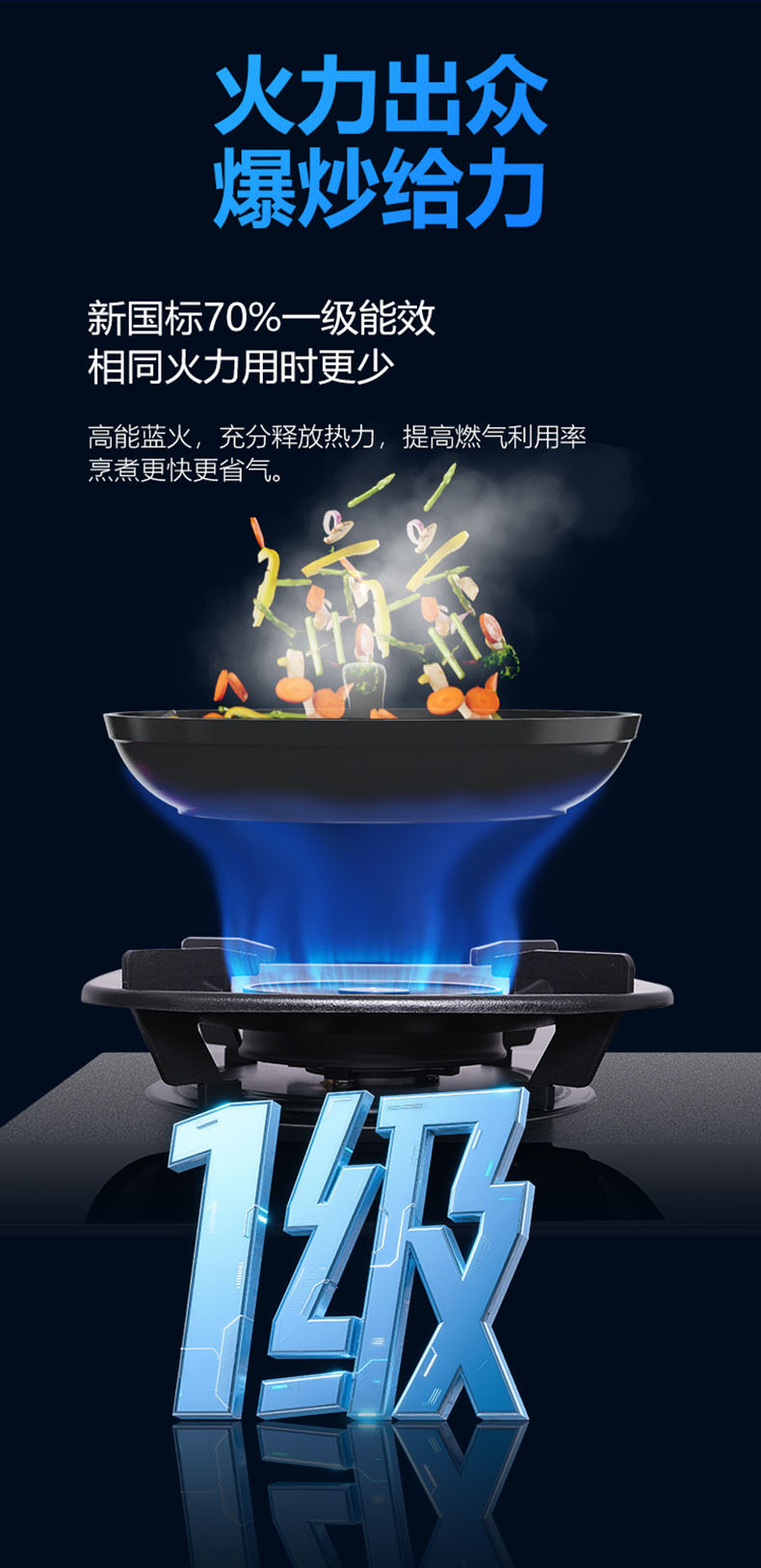 - 三噴引射,立體進(jìn)氣,5.2kW大火力盡享爆炒